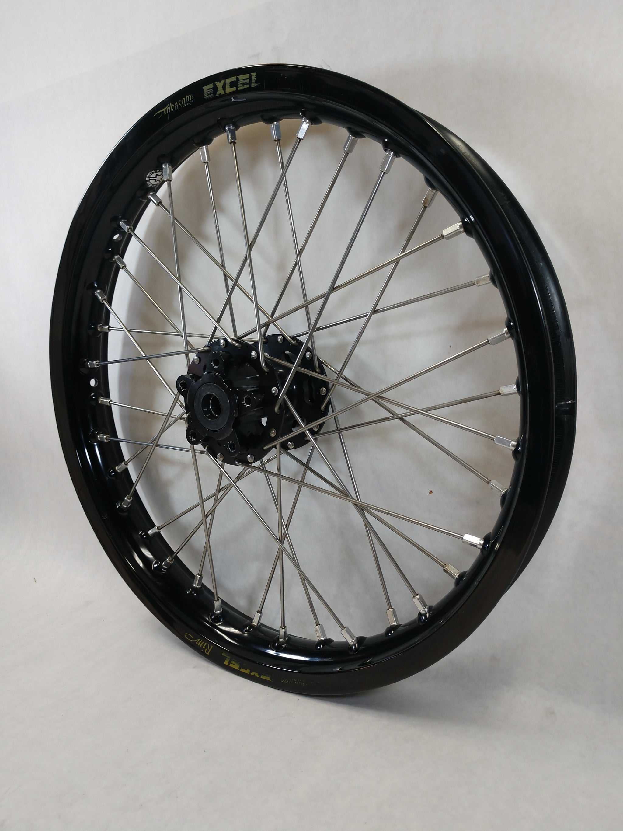 Ready to ship 2005-2023 KTM Motocross Black Wheel Set. This Wheelset has a 21x1.60 Black Excel Takasago Superlaced with heavy duty spokes and nipples to a Black Haan Billet hub...