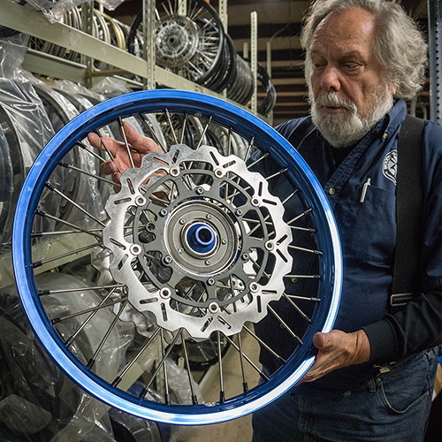 Following his military service Woody moved to Colorado in 1973 and found his niche on the motorcycle race track. An avid racer and fierce competitor, Woody haunted the race tracks and founded the Motorcycle Road Racing Association to create a safer environment for racers. While working for a dealership and servicing broken moto wheels firsthand, Woody encountered the weaknesses of stock laced wheels and parts. Motivation to craft a better alternative led him to engineer a new, stronger, lace pattern that would combat OEM shortcomings. Woody’s Wheel Works launched in ’73 with a goal that still stands today: To Produce Dynamic Motion Under Solid Fundamentals.